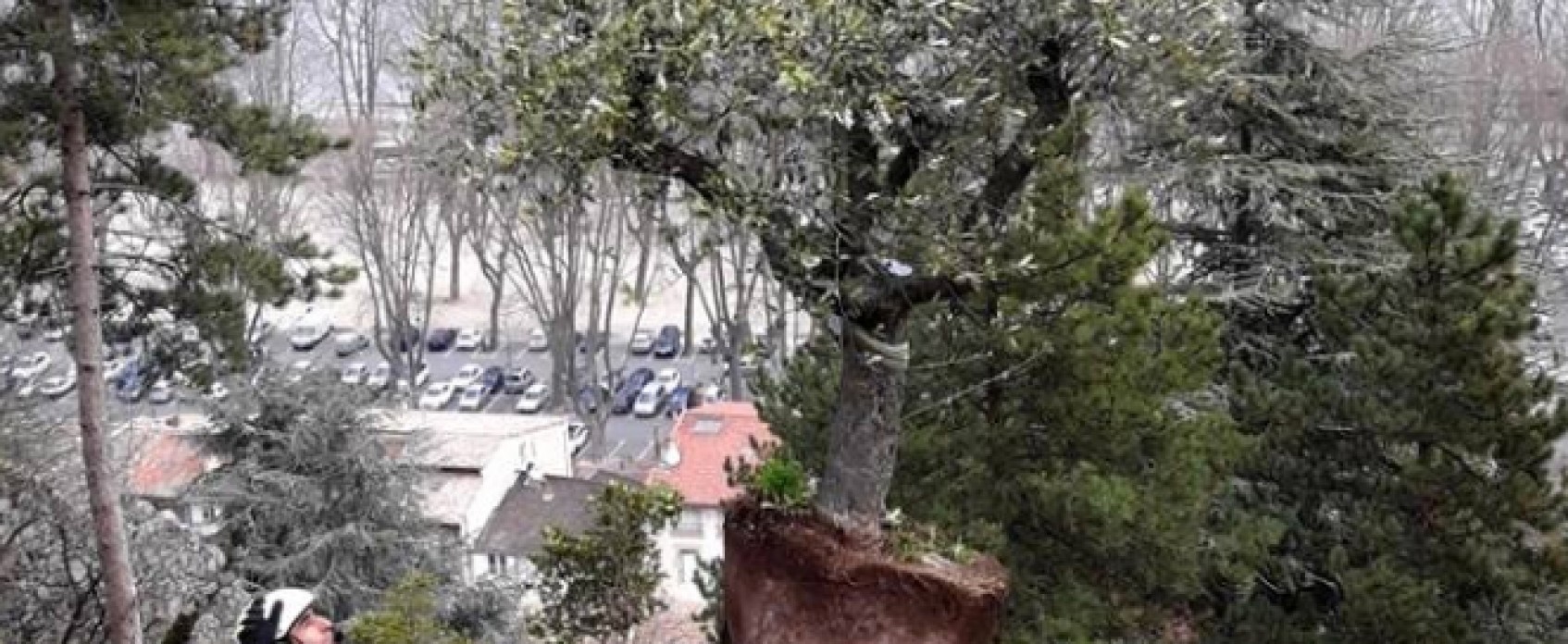 Étant entouré de murailles, il a fallut faire appel à une grue pour déposer certaines essences.