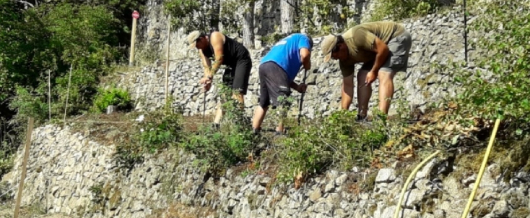 La première cuvée du Jardin d’Eden prévue en 2020. plantation des vignes Avril 2017. Merci à cette entreprise locale pour leur aide et leur confiance.